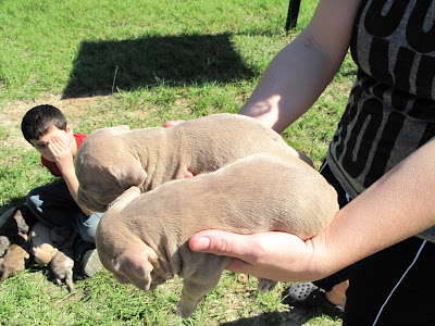 These 2 were my favorites! They remind me of my boy Bronx. They are twins:) A male and a female. It is hard to tell in the pictures that they are fawn with blue brindle! How rare and cool is that?